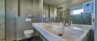 - Sanitär: Fußbodenheizung in Bädern, Wand-WC (Tiefspüler), Handwaschbecken (43x34 cm), Waschtisch (120x46 cm), Chrom-Armaturen, Duschkopf, Mischer, Handbrause.
