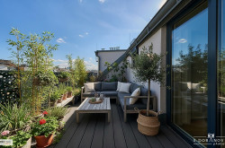 Die Wohnung bietet eine großzügige Terrasse, lichtdurchflutete Räume und einen fantastischen Ausblick über Wien.