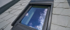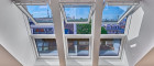 VELUX-Dachfenster mit Klappfunktion, Außenrollos mit Solar-Antrieb.