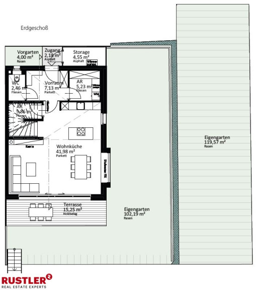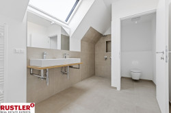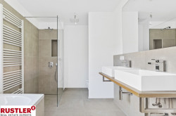Die Liebe zum Detail zieht sich durch alle Bereiche und basiert auf ausgewählten Materialien und hochwertigen Markenprodukten. Elegante Parkettböden in allen Wohn- und Schlafräumen, Innentüren weiß matt mit Holzzarge bzw. Glastüren, großzügige Terrasse im Erdgeschoß mit Kaltwasseranschluss und Außenbeleuchtung, Terrasse im Dachgeschoß mit beeindruckender Aussicht, großformatige Fliesen (60 x 60 cm) in den Sanitärbereichen, Badewannen mit Markenarmaturen, bodenbündige Duschen, sämtliche Häuser werden vollständig mit Raffstores ausgestattet und noch vieles mehr...