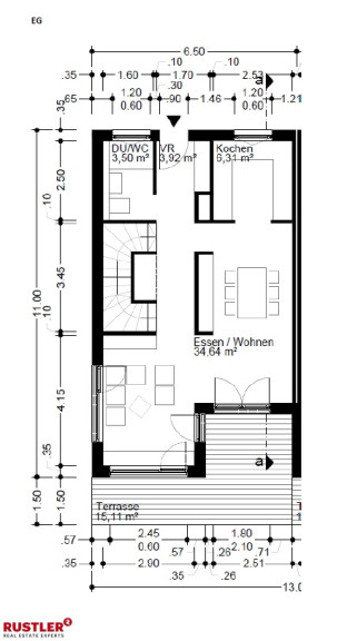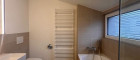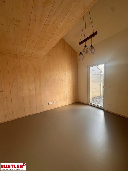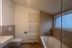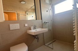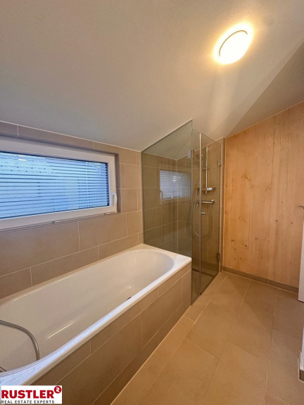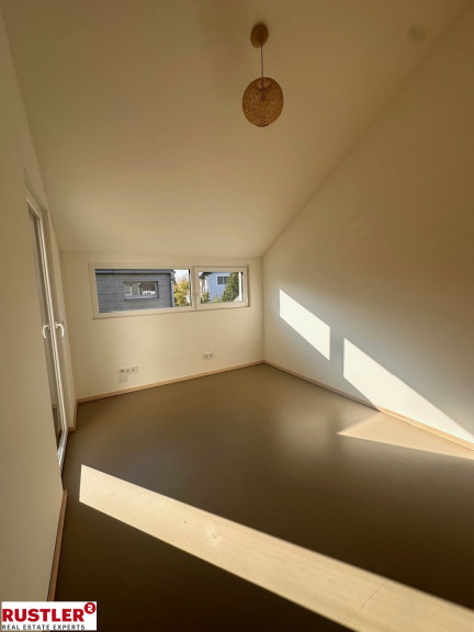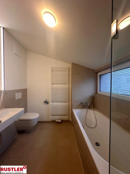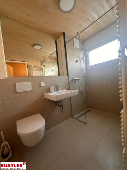 Das Erdgeschoss wird durch eine energieeffiziente Fußbodenheizung beheizt, die in allen Räumen eine gleichmäßige Wärmeverteilung sicherstellt. Von hier aus gelangen Sie direkt auf die überdachte Terrasse und in den ca. 70 m² großen, voll eingezäunten Eigengarten, der Platz für Erholung und Freizeitaktivitäten bietet. Zudem befindet sich auch das Gästebad, ausgestattet mit Dusche, Wc und Fenster auf dieser Etage.