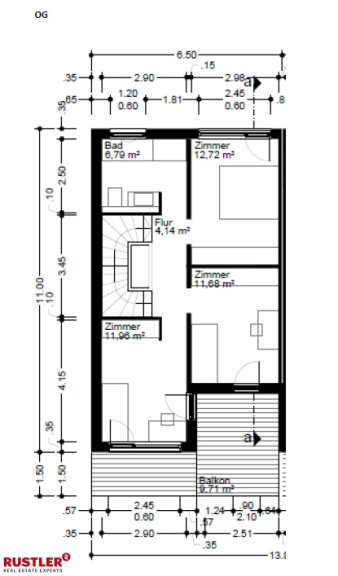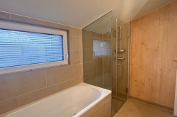 Im ersten Obergeschoss befinden sich drei geräumige Schlafzimmer (zwei davon mit Zugang zu dem großen Balkon), die viel Platz für eine Familie bieten. Ein modernes, stilvoll gestaltetes Badezimmer mit Wanne, Dusche und Fenster, runden das Raumangebot im Obergeschoss ab.
