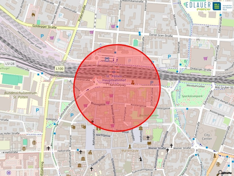 Das Geschäfts- und Bürogebäude befindet sich direkt im Zentrum von St. Pölten. Besonders erwähnenswert ist die ausgezeichnete Verkehrsanbindung. Sowohl in öffentlicher als auch privater Hinsicht ist das Büro sehr gut gelegen. Diese gute Lage spiegelt sich auch in den Bereich Infrastruktur und Einkaufsmöglichkeiten wider. Keine Minute Gehzeit entfernt befindet sich der St. Pöltner Hauptbahnhof und auch diverse Einkaufsmöglichkeiten befindet sich nur wenige Meter entfernt.