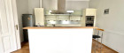 - offene, komplett ausgestattete Wohnküche mit weißen Fronten und Nirosta-Einbaugeräten (Marke: AEG)