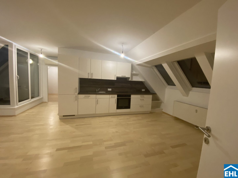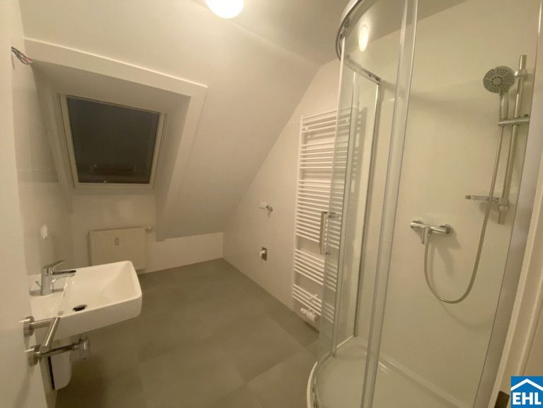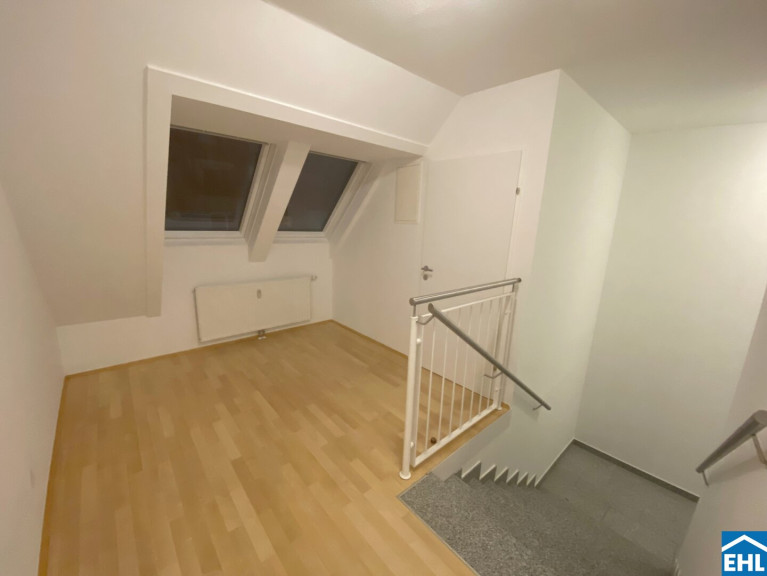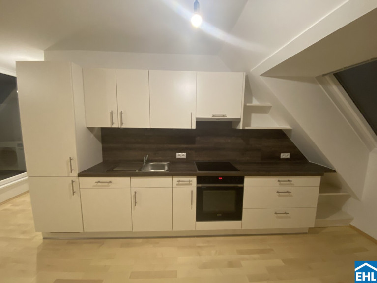 Die Wohnung selbst befindet sich im 1. Dachgeschoss und verfügt über eine geräumige Wohnküche mit vollausgestatteter Einbauküche, zwei Schlafzimmer, ein Badezimmer mit Dusche und Waschmaschinenanschluss, ein separates WC mit Handwaschbecken. Die gemütliche Loggia rundet das Angebot ideal ab!