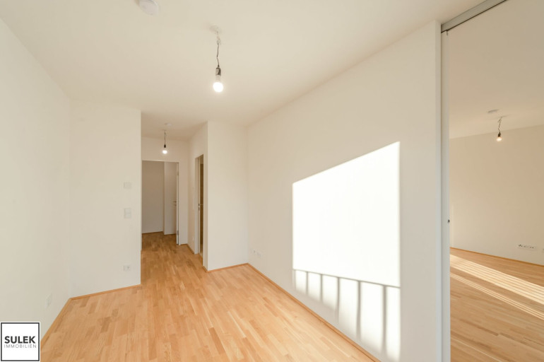 Zur befristeten Miete (5 Jahre) gelangt hier eine 2 Zimmer - Zweitbezugs - Neubauwohnung in der Margaretenstraße 25, 1040 Wien. Sie betreten diese Neubauwohnung im 2. Obergeschoss durch einen verfliesten Vorraum, mit ausreichend Platz für eine Garderobe. Hier befindet sich auch der Zugang zur separaten Toilette mit Handwaschbecken, sowie zum Wohn- und Essbereich samt voll ausgestatteter Küche. Der Vor- und Wohnraum sind durch eine schöne Glastür voneinander getrennt. Der Wohnraum ist aufgrund seiner südostseitigen und hofseitigen Ausrichtung als sehr hell und ruhig zu beschreiben. Über das Wohnzimmer ist das Schlafzimmer begehbar. Darüber erreichen Sie wiederum das Badezimmer mit moderner Walk In-Dusche, Waschmaschinen-Anschluss und Waschtisch samt Spiegel, sowie den praktischen Abstellraum.