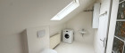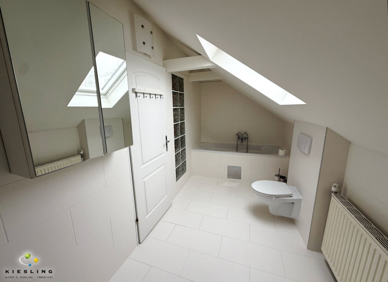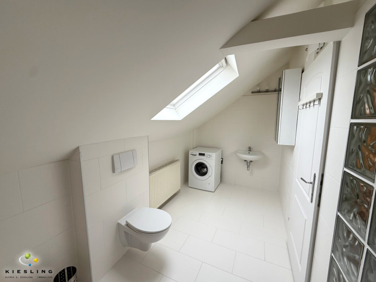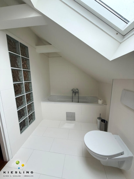 Das Badezimmer ist - so wie die Küche - saniert worden und somit neu. Es ist geräumig und verfügt über Badewanne, WC, Waschmaschine und ein Dachfenster für Tageslichteinfall.