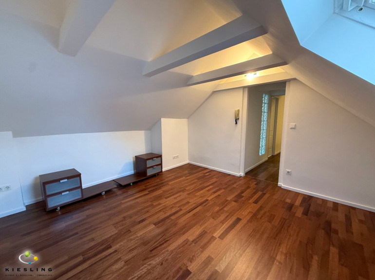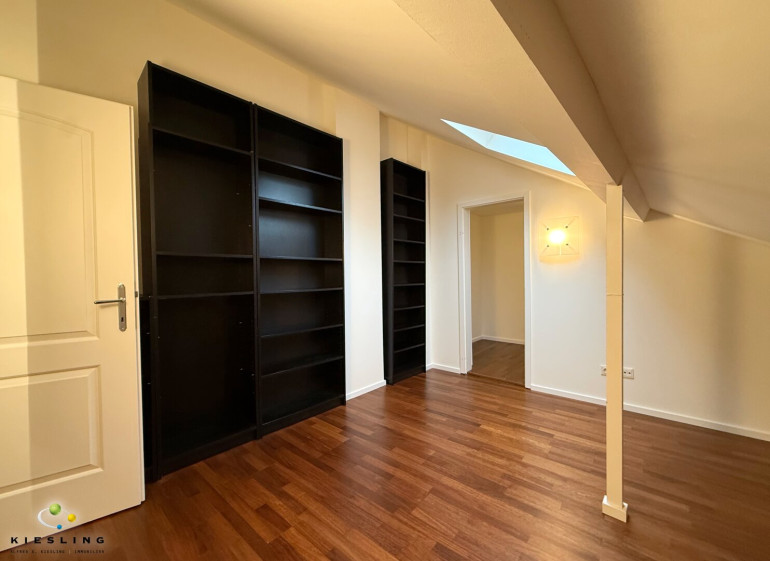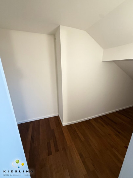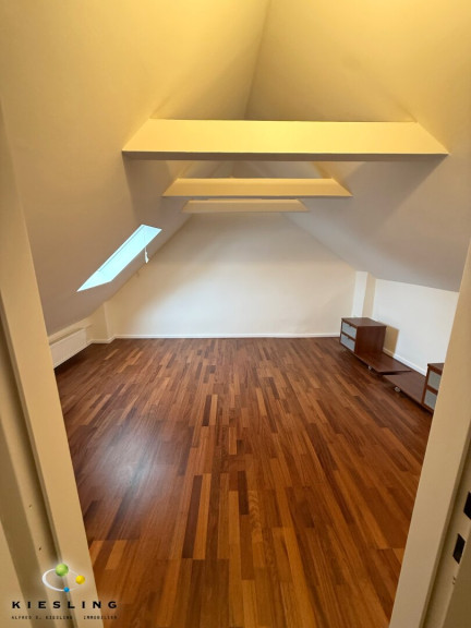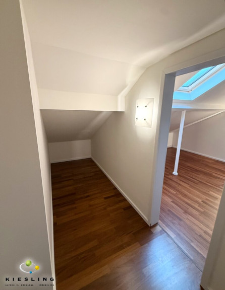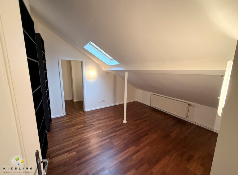 Der Stiegenaufgang direkt neben der Küche führt Sie ins Obergeschoss/Daschgeschoss der Wohnung. Hier befinden sich zwei Zimmer. Eines der Zimmer mit Schrankraum im Anschluss.