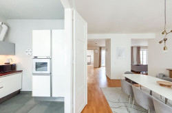 The apartment is located on the 3rd floor of a prestigious old building, is accessible directly from the elevator, and offers the following room layout: