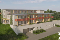 Dicke Mauern. Dachüberstände. Handwerklich geprägte Putzoberflächen. Fußbodenheizung, großzügige Balkone und Terrassen, passive Kühlung der Räume über die Tiefenbohrungen im Sommer. Die dicken Mauern speichern die Wärme im Winter und helfen die Wohnräume im Sommer angenehm kühl zu halten. Sie genießen die großzügigen überdachten Terrassen als zusätzlichen Wohnraum, im Erdgeschoß mit Garten. Gemeinsames nachbarschaftliches Beisammensein auf der überdachten beim Garten gelegenen Gemeinschaftsterrasse mit Küche - solange es die Temperaturen zulassen. Bei kalten Außentemperaturen freuen Sie sich über die Raumhöhe von 2,80m in den hellen und freundlichen Wohnräumen, den Eichenparkett, die geschmackvoll