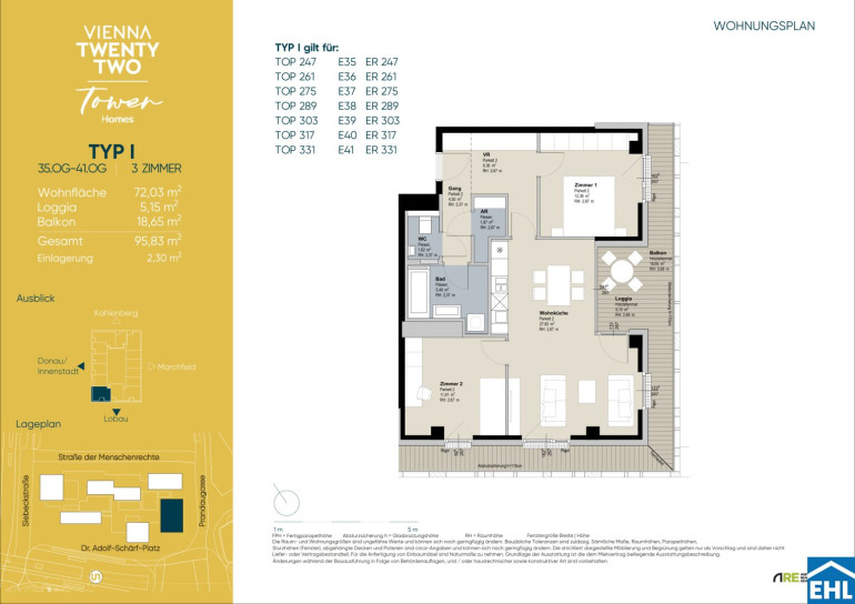 In einzigartiger Lage, direkt bei der U1-Station Kagran und vis-à-vis vom Donau Zentrum, entsteht ein exklusiver, ca. 155m hoher Wohnturm mit 45 Etagen. Die insgesamt 347 Mietwohnungen bieten einen vielfältigen Wohnungsmix: von smart geschnittenen 1,5-Zimmer-Apartments ab ca. 38 m² über komfortable 2-Zimmer-Wohnungen bis hin zu großzügigen 3- und 4-Zimmerwohnungen mit bis zu ca. 80 m².