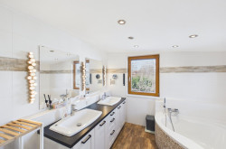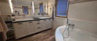 Das Haus verfügt über ein modernes Bad, das sowohl mit einer Badewanne als auch mit einer Dusche ausgestattet ist, sodass Sie sich nach einem langen Tag perfekt entspannen können.