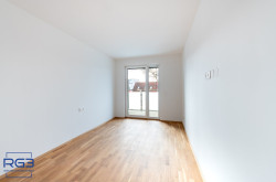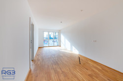 Geradeaus öffnet sich der Wohnbereich. Hier geht der Küchenraum fließend in das großzügige Wohnzimmer über. Der Raum ist angenehm geplant, hell und sehr gut möblierbar. Vom Schlafzimmer gelangen Sie direkt auf die Loggia mit einem wunderbaren Blick in den Südwesten Richtung Alte Donau, zu der Sie nur ca. 170m Gehweg haben.