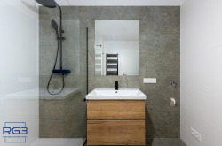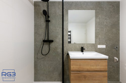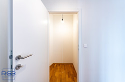 Mit dem Lift fahren Sie bequem in den ersten Stock. Sie betreten die Wohnung und spüren sofort: alles ist neu, alles ist ruhig, alles passt zusammen. Rechts befindet sich ausreichend Platz für Garderobe und Jacken. Links liegt das moderne Badezimmer mit extra Toilette, klar gestaltet, hochwertig ausgeführt.