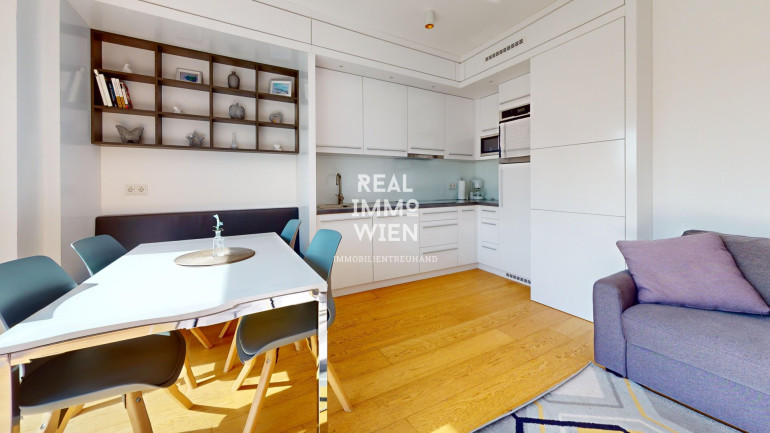 - Voll Ausgestatte Küche inkl. Kühlschrank, Gefrierschrank, Induktionsceranfeld, Dunstabzug, Backrohr, Mikrowelle und Geschirrspüler