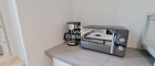 Die Küche ist komplett ausgestattet: Mikrowelle, Cerankochfeld, Backofen, ausreichend Koch- und Essgeschirr Utensilien, Wasserkocher, Filter-Kaffeemaschine, Geschirrspüler und Kühlschrank mit Gefrierfach und ein kleines Frühstücksecke.