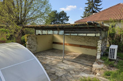 - Brunnen, Gartenhütte und Pool mit Luftwärmepumpe
