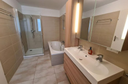 - Badezimmer mit Dusche, Badewanne & Fenster, separates WC