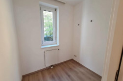 Die Wohnung verfügt über zwei Schlafzimmer, eines hofseitig, das zweite straßenseitig