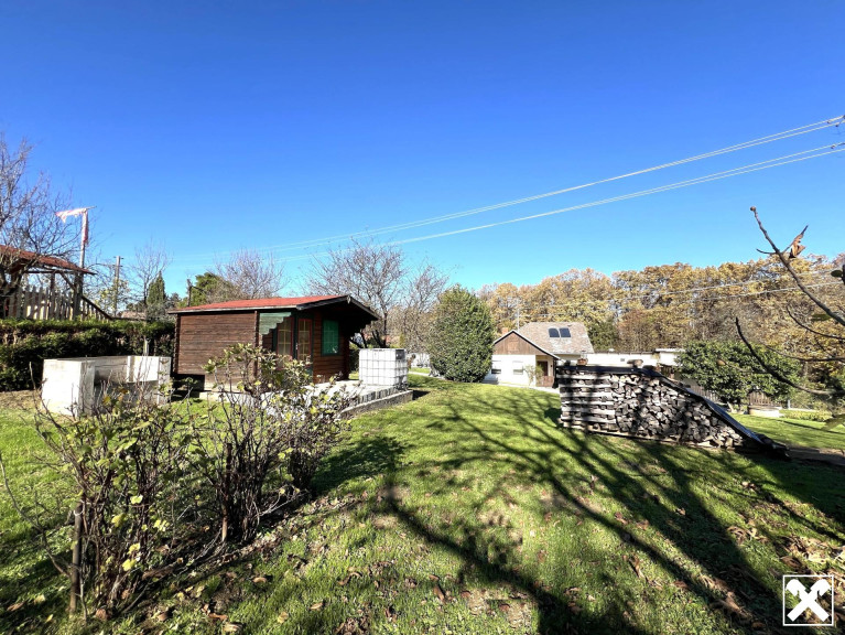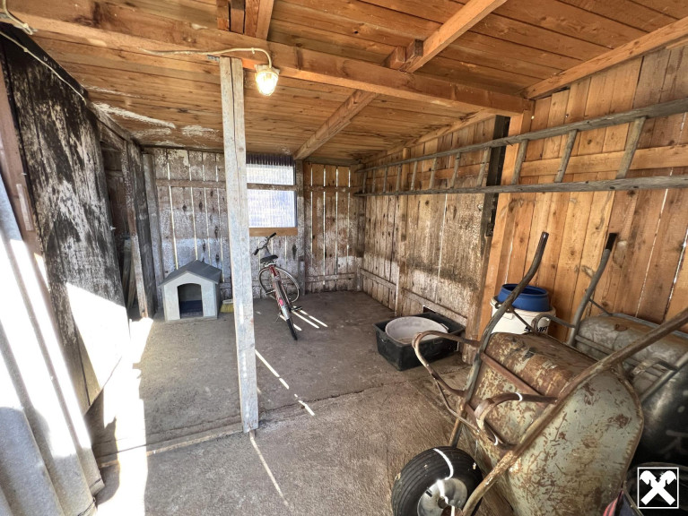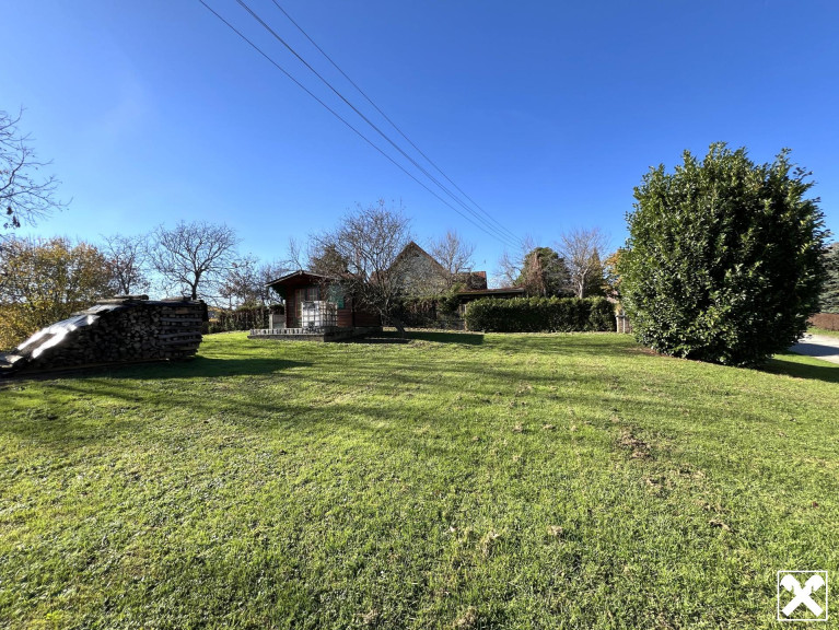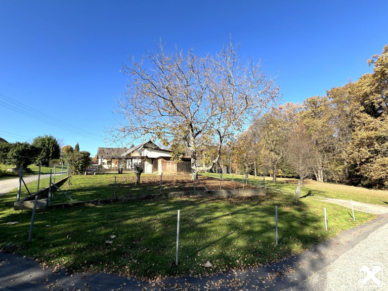 Das Grundstück, auf dem sich das Haus befindet, hat eine Fläche von 751 m², auf der gegenüberliegenden Straßenseite gibt es ein weiteres Grundstück mit 2851 m² (Etwa 840 m² davon sind Bauland, der Rest Landwirtschaftliche Nutzfläche).