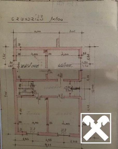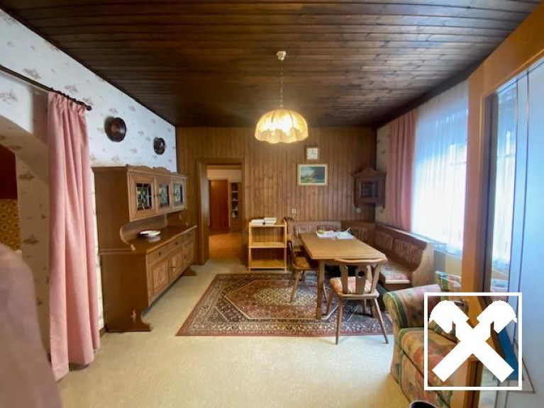Das im Jahr 1955 errichtete Objekt wurde 2005 umfassend saniert (Dach, Fenster, Tür, Tor, Heizung) und bietet auf etwa 102 m² Wohnfläche 2 (Schlaf-)Zimmer, Wohnküche, Wohnzimmer, Bad und separates WC.