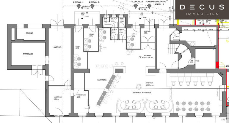 - EG ca. 221,28 m²: Monatsmiete € 3.701,57 inkl. BK und Ust.