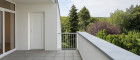 Auf den Freibereichen gelangen pflegeleichte Betonsteinplatten zum Einsatz, die durch eine hohe Widerstandsfähigkeit punkten. Glasgeländer unterstreichen die zeitlos schöne Eleganz und kreieren in Verbindung mit der Umgebung eine einzigartige Atmosphäre zum Verweilen und Wohlfühlen.