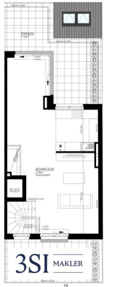Diese exklusive Dachgeschosswohnung (Maisonette) mit 100 m² Wohnfläche befindet sich in einer der begehrtesten Lagen von Stammersdorf, umgeben von der idyllischen Heurigengegend und der Natur. Aufgeteilt in drei gut geschnittene Zimmer und mit zwei großzügigen Terrassen bietet diese Wohnung nicht nur modernen Komfort, sondern auch ein angenehmes Raumklima, das durch die neu installierte Deckenkühlung perfekt ergänzt wird.