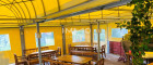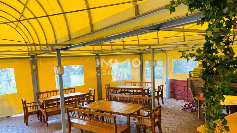 Das Restaurant ist vollständig ausgestattet: Küche, Nebenräume, Gastraum und ein sonniger Gastgarten mit überdachtem Bereich, in dem sich Gäste auch bei Regen wohlfühlen. Während die Erwachsenen entspannen oder essen, können Kinder im Freien spielen – ein Plus, das man hier wirklich schätzt.
