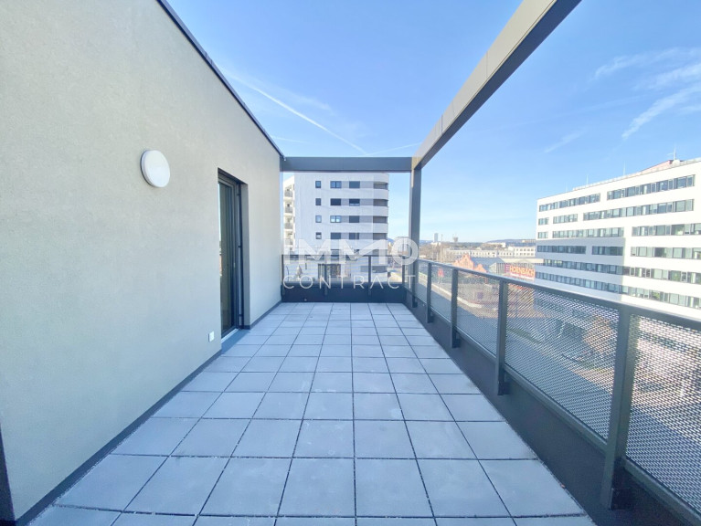 Dieses Penthouse bietet weiten Ausblick von Danube Flats bis Tripple Tower, viel Freiraum und Nähe zu öffentlichen Verkehrsmitteln.
