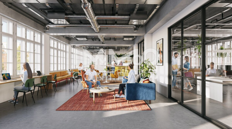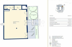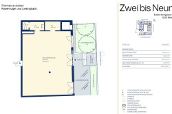 Die Bürofläche gliedert sich in einen 99,22qm großen Arbeitsraum mit 4,15qm großem Abstellraum und einem kleinen Vorraum ( 3,73qm) mit Handwaschbecken zum WC (1,48qm).