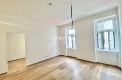Altbau Charme komplett kernsaniert! Vom Vorraum erreicht man Bad, WC und das Wohnesszimmer mit Küche in eigener Nische und großzügigem Abstellraum/Speis. Vom Wohnesszimmer begeht man getrennt beide Schlafzimmer. Gemeinschaftsgarten mit Spielplatz.