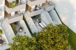 TRAUM TOWNHOUSE ! Vom Eingang geht es vom Vorraum mit Gäste WC in ein gemütliches Wohnesszimmer mit Terrasse die über den eigenen Garten und in die Bäume der Gartenebene blickt . Ein Schlafzimmer mit Duschbad ist auch auf diese Terrasse orientiert. Eine Treppe führt von der Terrasse in den eigenen Garten. Zusätzlich befindet sich auf der anderen Seite der Gartenebene ein Gemeinschaftsgarten mit Spielplatz.