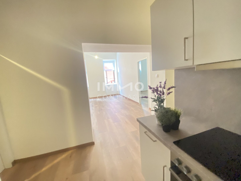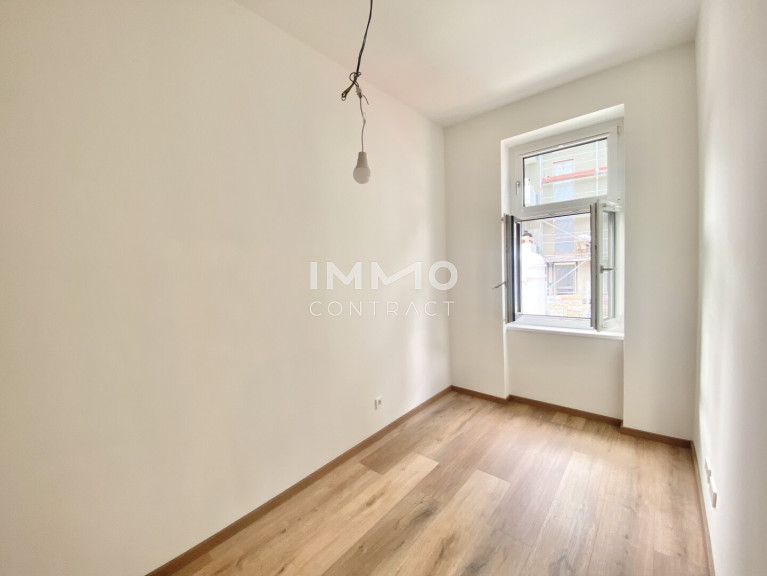 Altbau Charme komplett kernsaniert! Vom Vorraum erreicht man Bad, WC und das Wohnesszimmer mit Küche in eigener Nische und großzügigem Abstellraum/Speis. Vom Wohnesszimmer begeht man getrennt beide Schlafzimmer. Gemeinschaftsgarten mit Spielplatz.