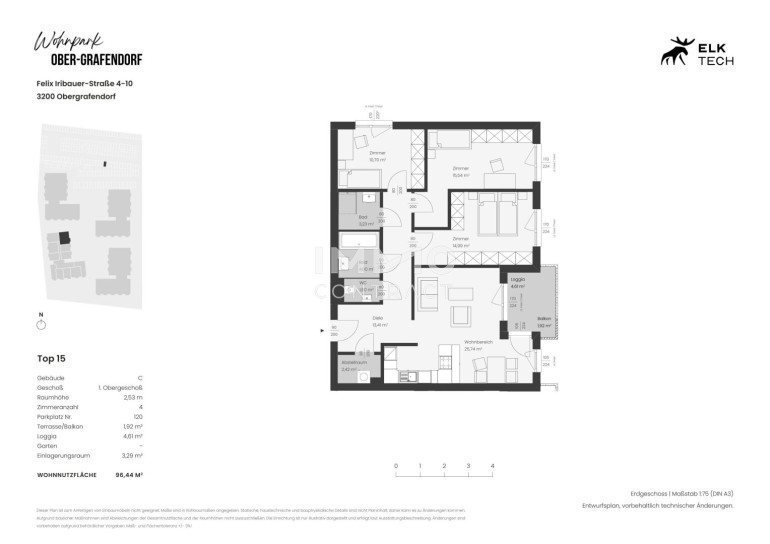 Der attraktive Wohnpark befindet sich im malerischen Ort Ober-Grafendorf, eingebettet in die reizvolle Landschaft Niederösterreichs. Die Region überzeugt durch ihre harmonische Mischung aus ländlicher Idylle und urbanem Komfort. Hier genießen Sie die Ruhe der Natur, ohne auf die Vorzüge städtischer Annehmlichkeiten verzichten zu müssen. In der unmittelbaren Umgebung finden Sie eine gute Infrastruktur mit Einkaufsmöglichkeiten, Restaurants und Cafés, die den täglichen Bedarf decken. Dank der Nähe zu Schulen und Kindergärten eignet sich die Lage ideal für Familien. Darüber hinaus besticht der Ort durch seine hervorragenden Verkehrsanbindungen an die umliegenden Städte, was Pendlern ein entspanntes Erreichen ihres Arbeitsplatzes ermöglicht. Freizeitliebhaber schätzen die zahlreichen Naherholungsgebiete insbesondere den Ebersdorfer See, die zu ausgedehnten Spaziergängen und sportlichen Aktivitäten einladen. Kulturfreunde kommen ebenfalls auf ihre Kosten, da die Region reich an kulturellen Veranstaltungen und historischen Sehenswürdigkeiten ist.Beschreibung der Immobilie