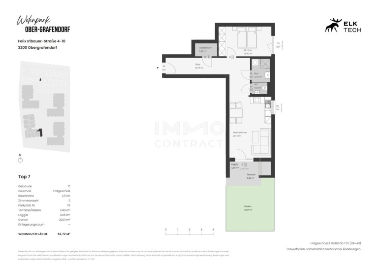 Der attraktive Wohnpark befindet sich im malerischen Ort Ober-Grafendorf, eingebettet in die reizvolle Landschaft Niederösterreichs. Die Region überzeugt durch ihre harmonische Mischung aus ländlicher Idylle und urbanem Komfort. Hier genießen Sie die Ruhe der Natur, ohne auf die Vorzüge städtischer Annehmlichkeiten verzichten zu müssen. In der unmittelbaren Umgebung finden Sie eine gute Infrastruktur mit Einkaufsmöglichkeiten, Restaurants und Cafés, die den täglichen Bedarf decken. Dank der Nähe zu Schulen und Kindergärten eignet sich die Lage ideal für Familien. Darüber hinaus besticht der Ort durch seine hervorragenden Verkehrsanbindungen an die umliegenden Städte, was Pendlern ein entspanntes Erreichen ihres Arbeitsplatzes ermöglicht. Freizeitliebhaber schätzen die zahlreichen Naherholungsgebiete insbesondere den Ebersdorfer See, die zu ausgedehnten Spaziergängen und sportlichen Aktivitäten einladen. Kulturfreunde kommen ebenfalls auf ihre Kosten, da die Region reich an kulturellen Veranstaltungen und historischen Sehenswürdigkeiten ist.Beschreibung der Immobilie