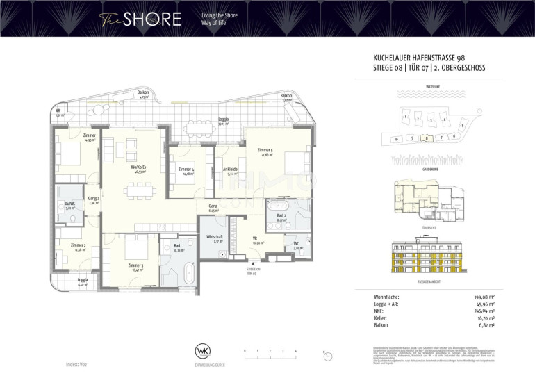Dieses einzigartige Projekt im 19. Bezirk bietet Ihnen nicht nur ein außergewöhnliches Wohnumfeld, sondern auch eine hervorragende Anbindung an das Wiener Stadtzentrum. Hier genießen Sie die Ruhe am Wasser und sind dennoch nur 15 Minuten von der Wiener Innenstadt entfernt. Viele der beliebten traditionellen Wiener Heurigen sind von dieser Adresse für exklusives Wohnen fußläufig erreichbar und der nahegelegene Leopoldsberg und Kahlenberg bieten nicht nur einen herrlichen Anblick, sondern laden auch zu Freizeitaktivitäten ein.Beschreibung der Immobilie