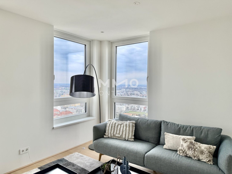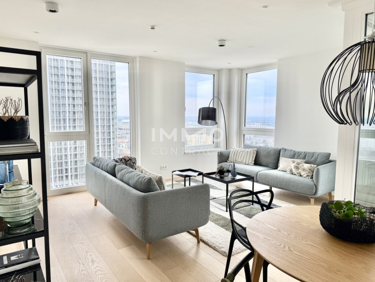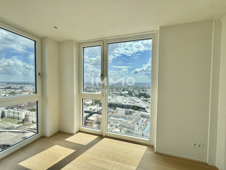 32. Etage: Luxus Wohnen hoch über der Skyline: Donauzentrum und U1 Kagran