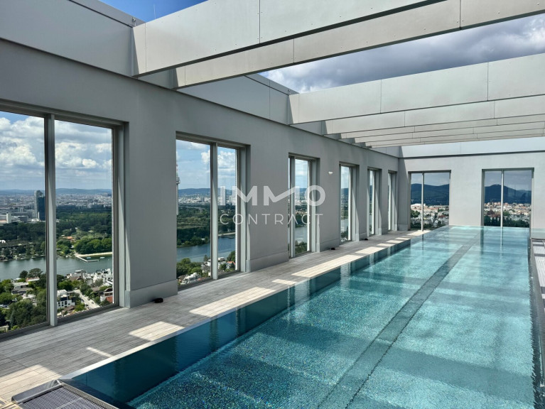 Abgerundet wird dieses durchdachte Projekt durch exklusive Annehmlichkeiten wie z.B. einen 19 m langen Rooftop-Pool mit atemberaubenden Ausblick auf die Donau und die Innenstadt, einen Fitnessraum, einen privaten Spa-Bereich mit Sauna und Ruheräumen, sowie einen exklusiv buchbaren Gemeinschaftsraum mit einer vollausgestatteten Küche.