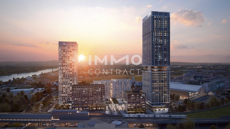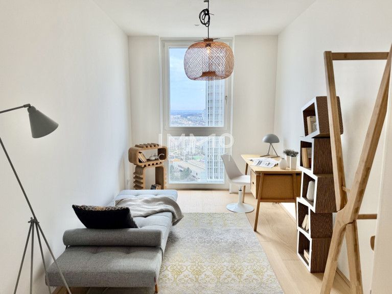 Im Wohnturm befinden sich rund 300 Wohnungen in unterschiedlichen Größen, aufgeteilt in vier Ausstattungskategorien. Die wenigen noch verfügbaren Einheiten verfügen über 2-4 Zimmer und sind zwischen ca. 46 m² - ca. 215 m² groß. Sämtliche der verfügbaren Eigentumswohnungen befinden sich im 22. – 32. Stockwerk und überzeugen mit der hochwertigen Ausstattungslinie „Sky Living“ (22. - 30. OG), wobei sich die Penthouse-Etagen (31. - 32. OG) nochmals in Ihrer Beschaffenheit abheben.