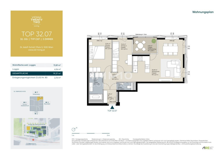 Der 22. Bezirk zählt zu den dynamischsten und aufstrebendsten Stadtteilen Wiens. Die Lage von VIENNA TWENTYTWO Living bietet die perfekte Mischung aus urbanem Lebensstil und Naturnähe. Die Alte Donau, sowie die Donauinsel befinden sich in unmittelbarer Nähe und bieten zahlreiche Freizeitmöglichkeiten wie Sport, Spazierengehen und Entspannen im Grünen. Das Projekt ist hervorragend an das öffentliche Verkehrsnetz angebunden. Die unmittelbar fußläufig erreichbare U-Bahn-Linie U1 sowie zahlreichen Buslinien ermöglichen eine direkte Verbindung ins Stadtzentrum und andere wichtige Bezirke. Auch die Infrastruktur in der Umgebung ist sehr gut: Einkaufsmöglichkeiten (Donauzentrum), Schulen, Kindergärten und medizinische Einrichtungen sind in der Nähe, was den Alltag der Bewohner erheblich erleichtert.Beschreibung der Immobilie