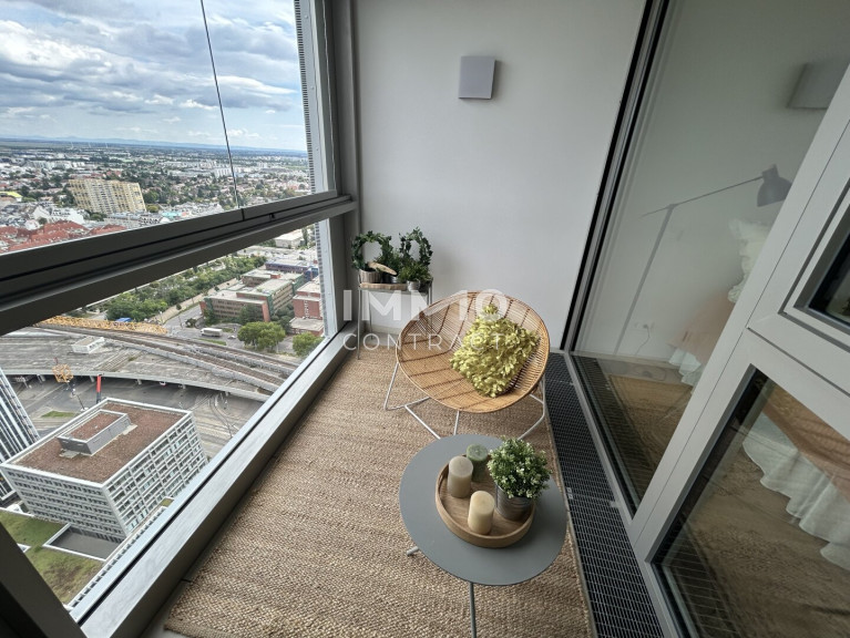Im Wohnturm befinden sich rund 300 Wohnungen in unterschiedlichen Größen, aufgeteilt in vier Ausstattungskategorien. Die wenigen noch verfügbaren Einheiten verfügen über 2-4 Zimmer und sind zwischen ca. 46 m² - ca. 215 m² groß. Sämtliche der verfügbaren Eigentumswohnungen befinden sich im 22. – 32. Stockwerk und überzeugen mit der hochwertigen Ausstattungslinie „Sky Living“ (22. - 30. OG), wobei sich die Penthouse-Etagen (31. - 32. OG) nochmals in Ihrer Beschaffenheit abheben.