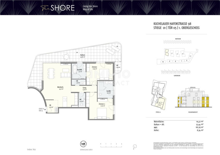Dieses einzigartige Projekt im 19. Bezirk bietet Ihnen nicht nur ein außergewöhnliches Wohnumfeld, sondern auch eine hervorragende Anbindung an das Wiener Stadtzentrum. Hier genießen Sie die Ruhe am Wasser und sind dennoch nur 15 Minuten von der Wiener Innenstadt entfernt. Viele der beliebten traditionellen Wiener Heurigen sind von dieser Adresse für exklusives Wohnen fußläufig erreichbar und der nahegelegene Leopoldsberg und Kahlenberg bieten nicht nur einen herrlichen Anblick, sondern laden auch zu Freizeitaktivitäten ein.Beschreibung der Immobilie