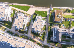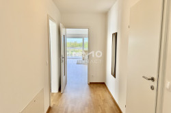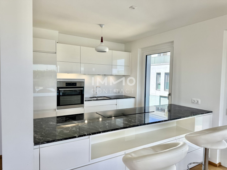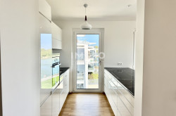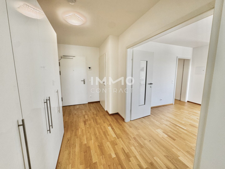 Die Wohnung befindet sich im zweiten Stock und verfügt über eine Wohnfläche von 118,4 m². Ein Keller mit ca. 14 m², ist ebenso inkludiert. Der Grundriss umfasst einen großzügigen Wohn- und Essbereich mit offener Küche und direktem Zugang zum Balkon, drei Schlafzimmer, zwei Badezimmer mit jeweils einem WC, ein Foyer und einen Abstellraum. Alle Schlafzimmer sind zentral zugänglich und separat begehbar. Der Balkon mit rund 14 m² Freifläche ist überdacht und blickt nach Osten auf den Kuchelauer Hafen und die Donau. Darüber hinaus sind alle Schlafzimmer mit bodentiefen verglasten französischen Balkonen ausgestattet.