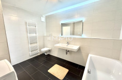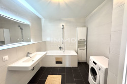 Die exklusive Küche ist mit modernen Elektrogeräten und einer Arbeitsplatte aus Naturstein ausgestattet. Die Fußböden sind mit Massivholzparkett und Steinzeugfliesen von höchster Qualität ausgestattet. Die Beheizung erfolgt zentral über eine Fußbodenheizung, die mit Fernwärme betrieben wird.