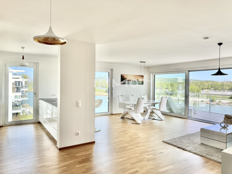 Diese außergewöhnliche Balkonwohnung befindet sich in einzigartiger Lage direkt am „Kuchelauer Hafen“ und bietet ein besonderes Wohnambiente im 19. Bezirk Döbling, mit direktem Blick aufs Wasser. Die Gegend ist bekannt für ihre hervorragende Infrastruktur und hohe Lebensqualität. Der 19. Bezirk, Döbling, ist besonders als edles und exklusives Wohnviertel bekannt und bietet zahlreiche Grünflächen, kulturelle Einrichtungen und lokale Geschäfte. In der unmittelbaren Umgebung befinden sich zahlreiche Geschäfte und Dienstleister. Etwa 500 Meter nördlich beginnt ein größeres Einkaufsviertel, in dem auch zwei lokale Anbieter in ca. 1,3 km Entfernung ansässig sind. Darüber hinaus gibt es viele weitere Geschäfte und Dienstleister für den täglichen Bedarf. Wien bietet eine große Auswahl an Infrastruktur und Annehmlichkeiten für den täglichen Bedarf, darunter das Einkaufszentrum Q19 in der Nähe des nur etwa 4 km entfernten Bahnhofs Heiligenstadt. In der Umgebung finden Sie viele gastronomische Einrichtungen, Weingüter und traditionelle Wiener Weinstuben (Heurigen). Das nahe gelegene Klosterneuburg bietet eine ruhigere Atmosphäre mit vielen Geschäften, Dienstleistern und Einrichtungen in unmittelbarer Nähe. Die Bildungseinrichtungen in Klosterneuburg sind leicht zugänglich. Grundschulen und Kindergärten sind ca. 2,5 km entfernt und das BG/BRG Klosterneuburg ca. 3,7 km entfernt. Wien beherbergt verschiedene weiterführende Schulen und ist bekannt für seine hochwertigen Universitäten und Einrichtungen der Erwachsenenbildung. Der Bahnhof Klosterneuburg-Weidling ist etwa 1,5 km entfernt.Beschreibung der Immobilie