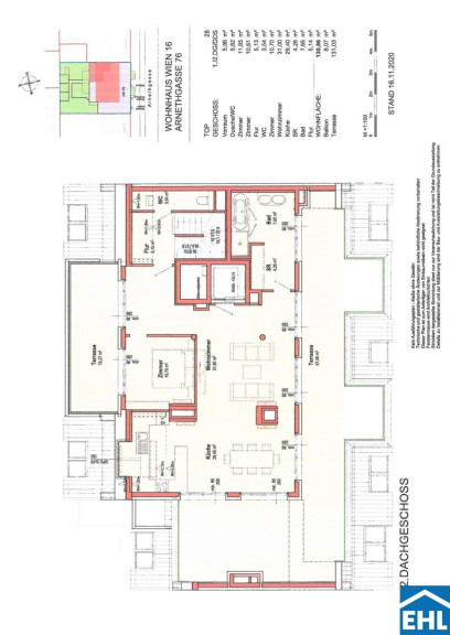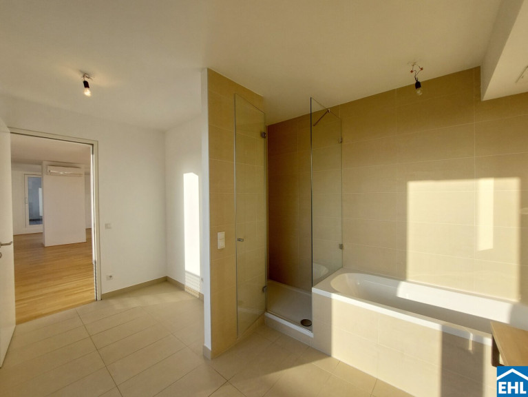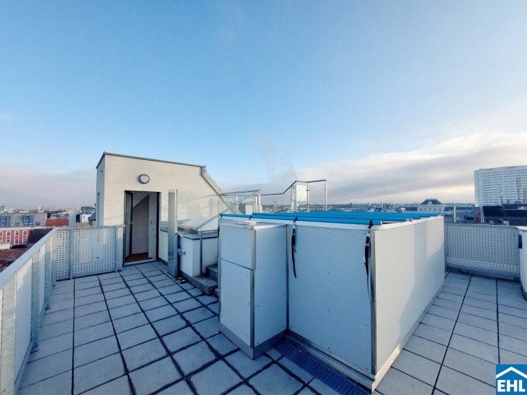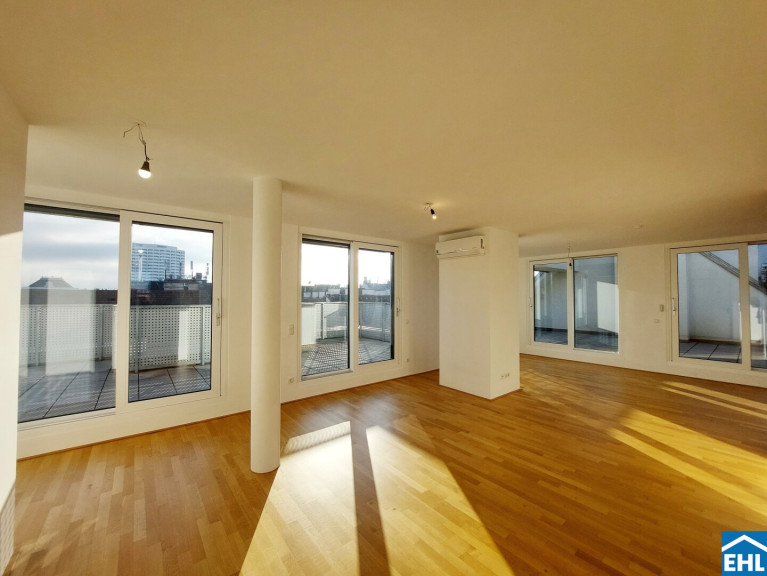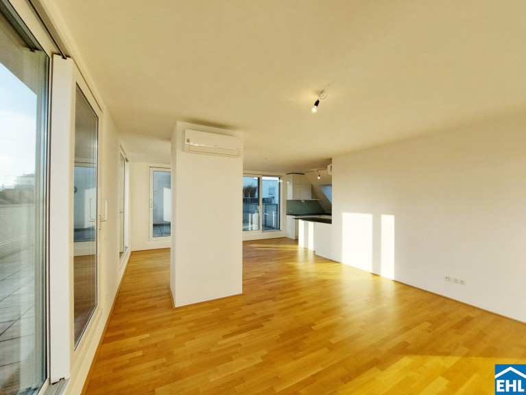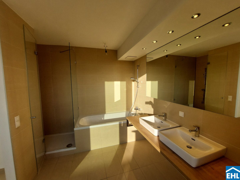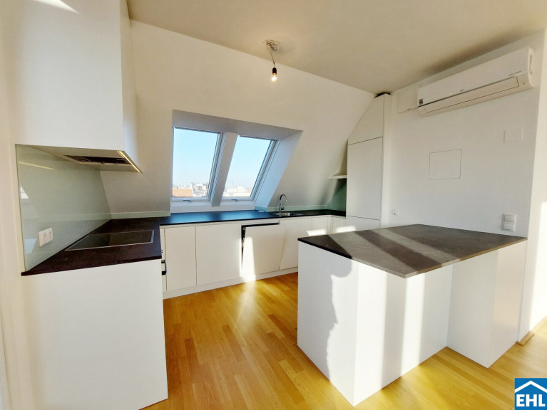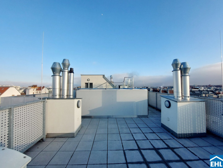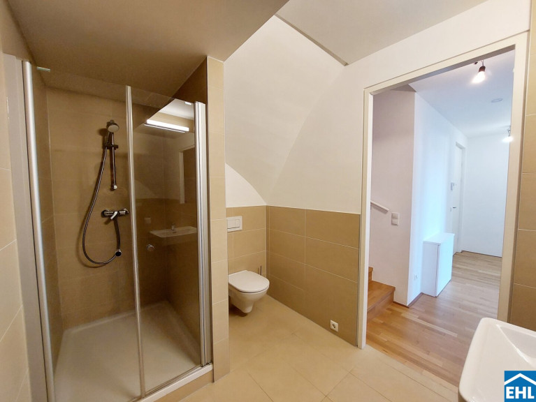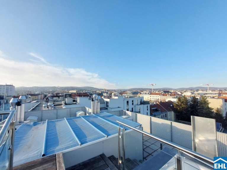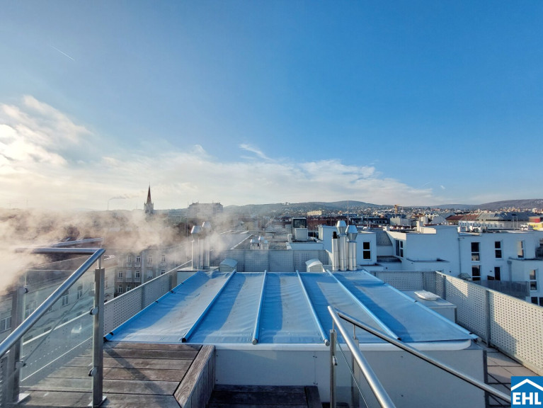 Die Wohnung selbst liegt im 1. und 2. Dachgeschoss und gliedert sich in eine großzügige Wohnküche, drei helle Schlafzimmer, zwei Badezimmer mit Badewanne und Duschen sowie einen Waschmaschinenanschluss und ein WC, eine separate Toilette, sowie einen Vorraum. Der nordseitige Balkon sowie Terrasse, die südseitige Terrasse und die Dachterrasse mit privatem Pool runden das Wohnerlebnis perfekt ab.