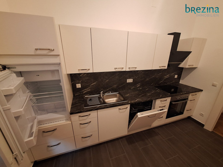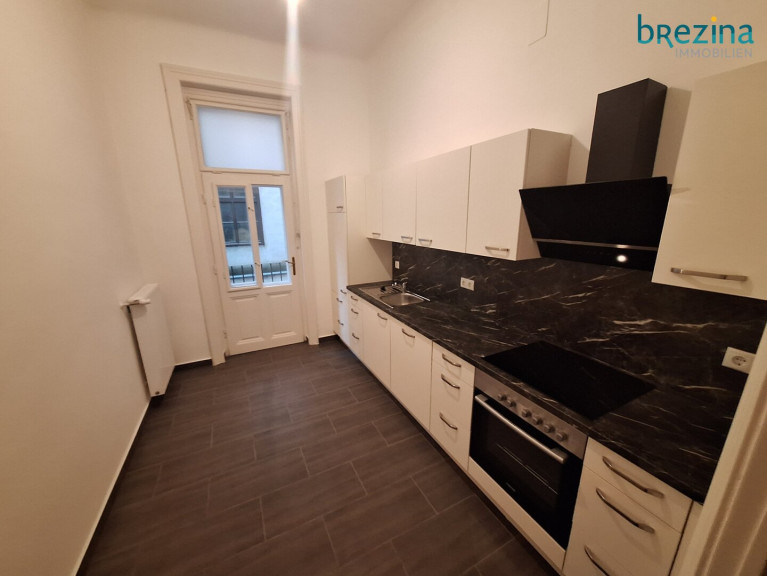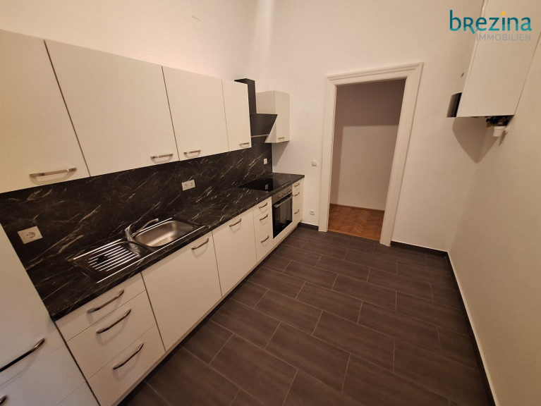 - Geräumige Küche einzeilig möbliert - mit kleinem Klopfbalkon,