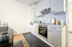 Betreten wird das Wohnhaus über einen Innenhof. Mit dem Lift gelangen Sie in das 3. Obergeschoß des Hauses, in dem die Wohnung befindet. Die Wohnung wurde vor wenigen Jahren saniert und weist einen modernen Zustand auf. Die Küche ist neuwertig und mit einem Geschirrspüler ausgestattet.
