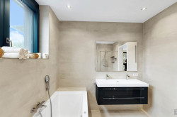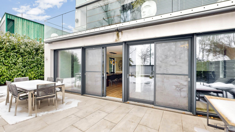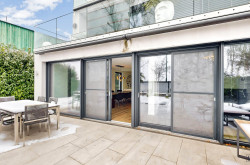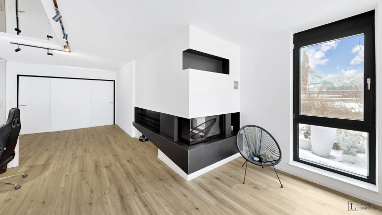 Die Wohnung besticht durch ihre seltene Lage auf eigenem Grund direkt an der Alten Donau. Die großzügigen Glasfronten schaffen helle, luftige Räume mit ungestörtem Blick auf Wasser und Stadt. Das durchdachte Raumkonzept umfasst ein Hauptschlafzimmer mit begehbarem Kleiderschrank, zwei weitere flexibel nutzbare Zimmer sowie einen offenen Wohn- und Essbereich – ideal für Entspannung und geselliges Beisammensein. Terrasse und Garten laden dazu ein, den Außenbereich in vollen Zügen zu genießen.